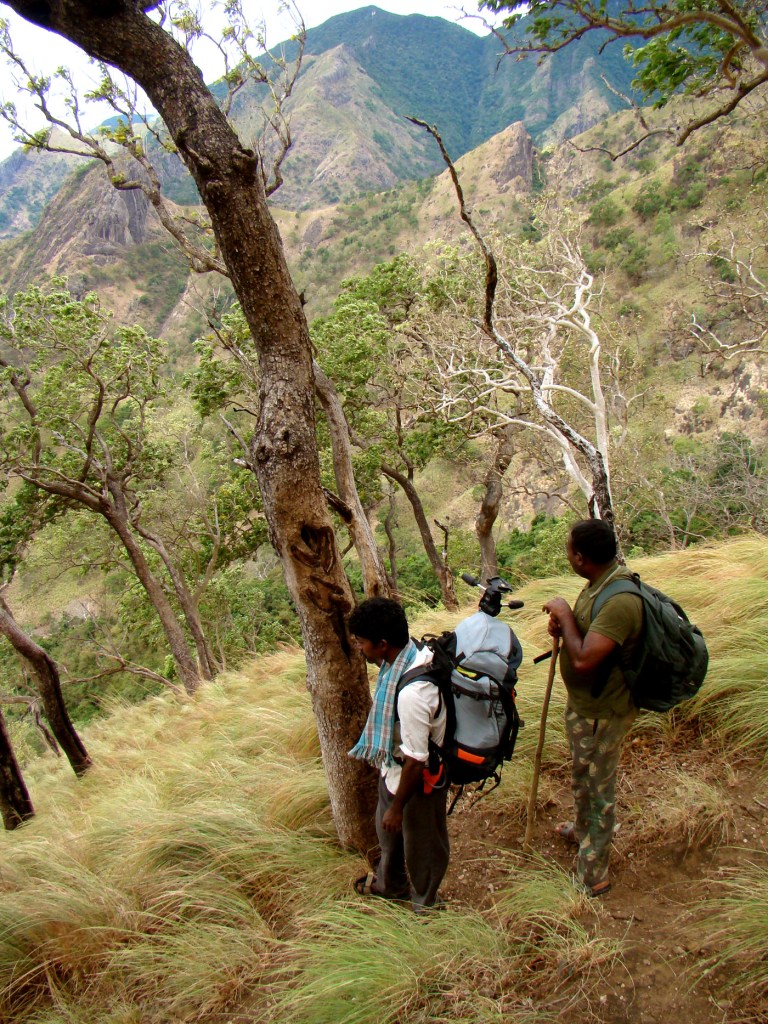 The next morning at around 7am, I found myself in the middle of a discussion by the rangers. They were trying to convince us to take a longer safer route downhill. All the 3 forest guards who were to join us for the return journey were of the opinion that we shouldn’t go by the steep route. I was told that we would have to walk on cliff edges and the wind would be so strong that they would blow us away.