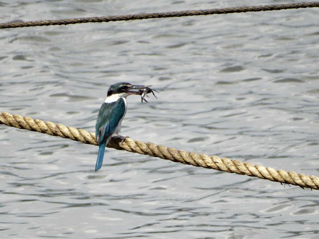 Then you have the Collared Kingfisher, sporting a blend of greens and blues who eat more than just fish as you can see in the photo!