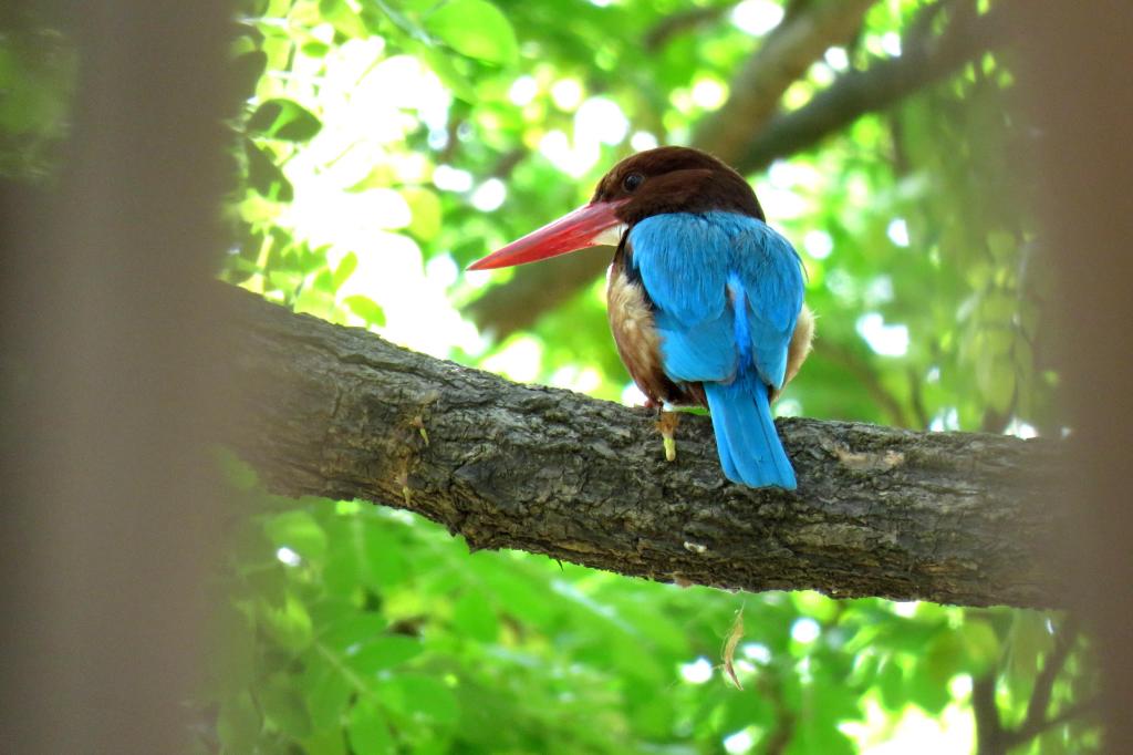 The White-throated Kingfisher is as common or sometimes more common than the “Common Kingfisher”. As the name suggests, it has a distinct white throat and brown head and is much bigger in size than the Common Kingfisher. The diet of the White-throated Kingfisher is diverse and I have even seen it smack a rat on the wall repeatedly to kill a rat before eating it!