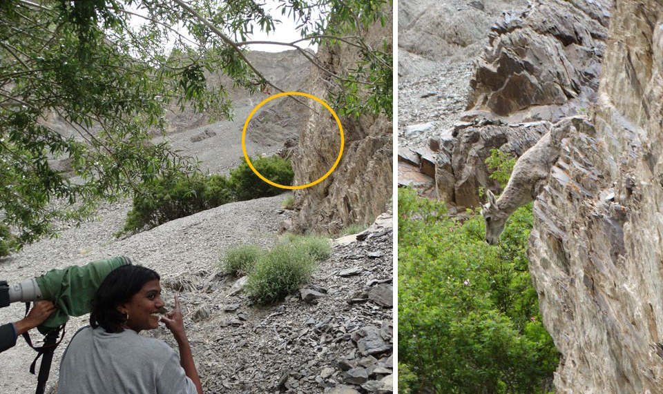 In Ladakh, I remember a group of wild Bharals (a.k.a Himalayan Blue Sheep) foraged just a few metres from us. This was because we decided to be in “statue position” for half an hour, when we first spotted them some few 100 metres away. We positioned ourselves against some rocks with our cameras very slowly and remained silent and still. Soon enough, when the group was comfortable with our presence and sensed no danger, both adult and young bharals came close to us to feed on the Siah plants that they relish so much.