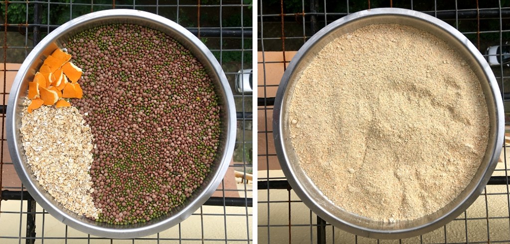 But, time and effort is required! I had been putting off making my own DIY soaps/scrubs for a while. I think I was just lazy. But the lockdown changed that. I used sometime to read up on this and decided to start on something simple. Often you draw inspiration from people who practice environmentally conscious actions in their everyday life. One such person is Assavri Kulkarni. Once, when I had visited her place, I saw a body scrub powder which was made of pulses, and had a citrus smell. Without hesitation, Assavri shared her amazing DIY scrub powder with me in a dabba. Back home, I relished and used that powder like it was some precious resource. When it finished, I had decided I would make some myself. But ofcourse my procrastinating self postponed this till recently.