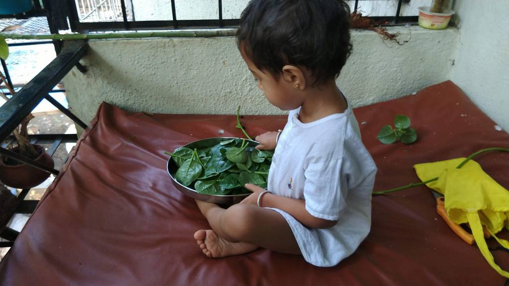 Assavri and Nirmal’s home is an abode for three wonderful dogs, one cat, several visiting squirrels, snakes, frogs, birds, insects, and loads of plants. In other words, their home is a mini biodiversity hot-spot! And here is where their 6 year old is also raised, in the lap of nature. Assavri and Nirmal are very conscious about what goes on their plates. They grow a part of their food at home, buy only local produce, use only Goan traditional kitchenware, use home-made soaps and scrubs amongst other eco-practices. Assavri makes the most creative dishes which are not only healthy and seasonal but can make anyone’s taste buds craving for more. Their daughter is an integral part of their farm to plate journey and helps around. Moreover, typical birthday bashes are replaced by small family get-togethers, with return gifts being wooden bird feeders. A&N have created a small library for their daughter that has old books gifted to her (instead of toys) from friends and family. At the age of six, she is attuned to the movements of critters around her, enjoys her games involving natural pigments and eco-toys, sports quite a bit of traditional knowledge on local herbs and “refuses” the (plastic) straw!