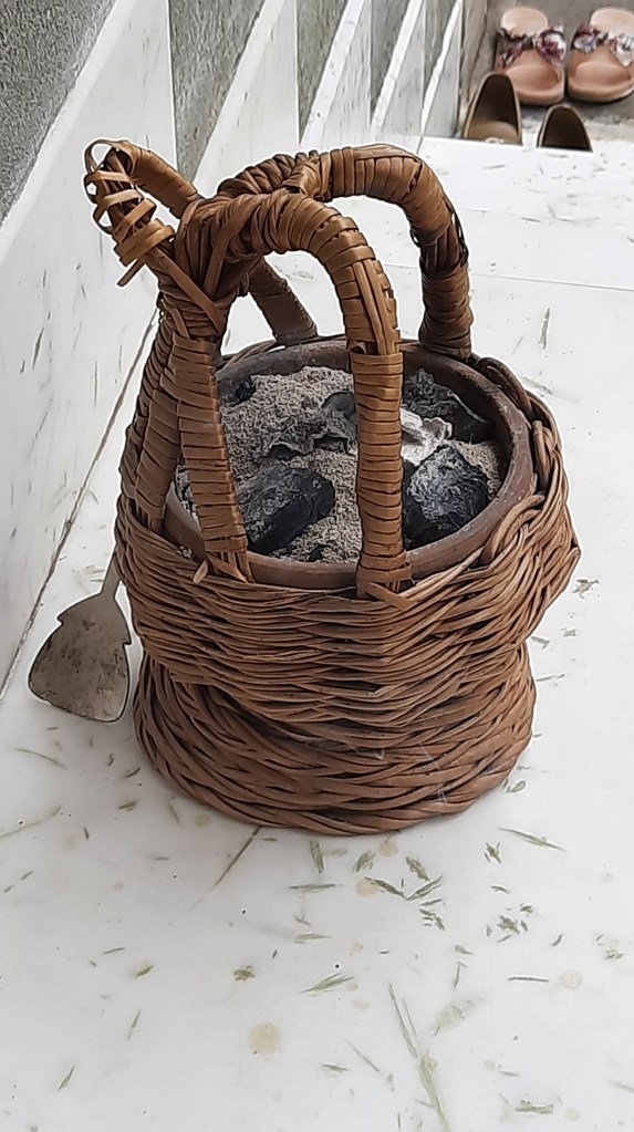 When temperatures drop, both members of the household inside the house and shepherds (Bakarwals) who roam around the mountains, carry with them a “Kangri”, a fire pot of sorts. The Kangri works like a heater and one can carry it around with them easily. These handmade baskets are made from local shrubbery and carry burning coal. Some families even put “ïsbun” in it which are dried plants which give out a musky fragrance when burnt.