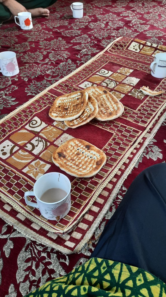 Everywhere we went, locals invited us to their homes for nun chai. Whether it was walking through the villages/towns or passing by isolated bakarwal encampments in the mountains, people completely unknown to us invited our group to have chai with them. Their hospitality knew no bounds. In one such episode, our trekking group landed up unannounced at a friend’s relative’s house and they were thrilled to have 10 of us at their home. The lady of the house called her family members from their jobs who returned home with lots of treats. They pampered us with several types of breads and toasts which went well with the unending supply of hot nun chai.