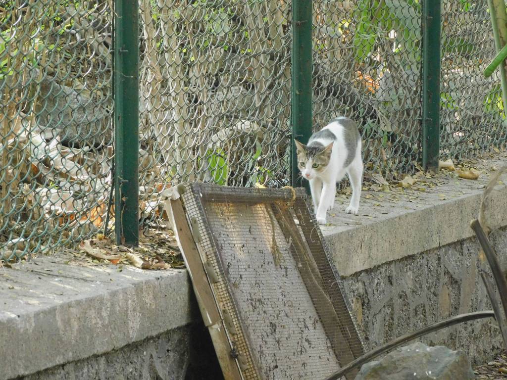 About 10 minutes passed, and the cat decided it’s play time was done. It stood up and crossed back to our side and walked away as coolly as it appeared. Not even