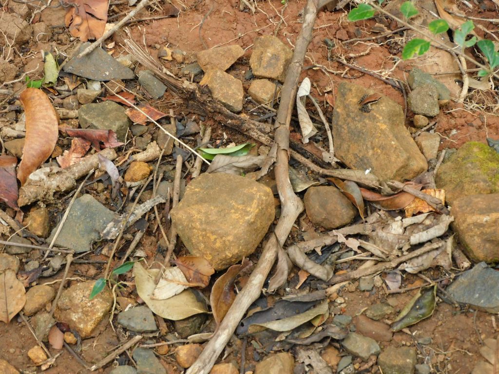 Check out the frog seated on top of the rock located on the top right of the photograph. Its a fungoid frog. This brightly coloured frog can be found on the forest floor in Western Ghats. It is not clear if this is the widespread Fungoid frog or Malabar Hills frog. They both look similar!