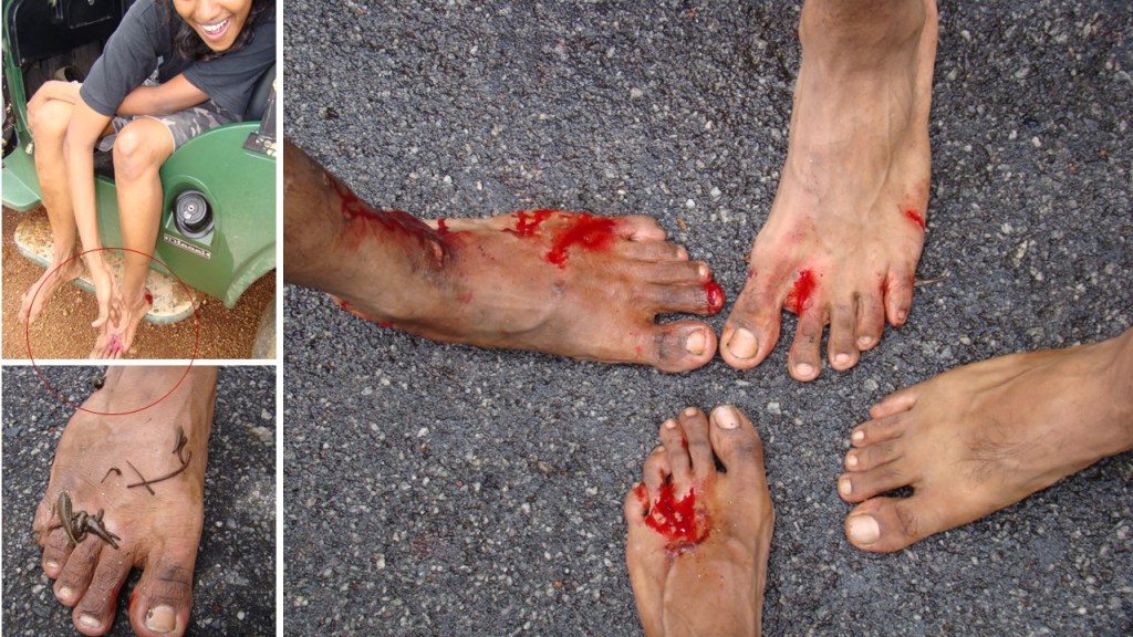 When we finally found our way and headed back to the village, we stopped for some tea and snacks. The locals looking at our bloody feet and legs looked amused as they whispered to each other in Kannada, “these are the crazy people who go into the forests looking for animals!”. Perhaps this was the silver lining, our adventurous and bloody day was at least a source of entertainment for some people!