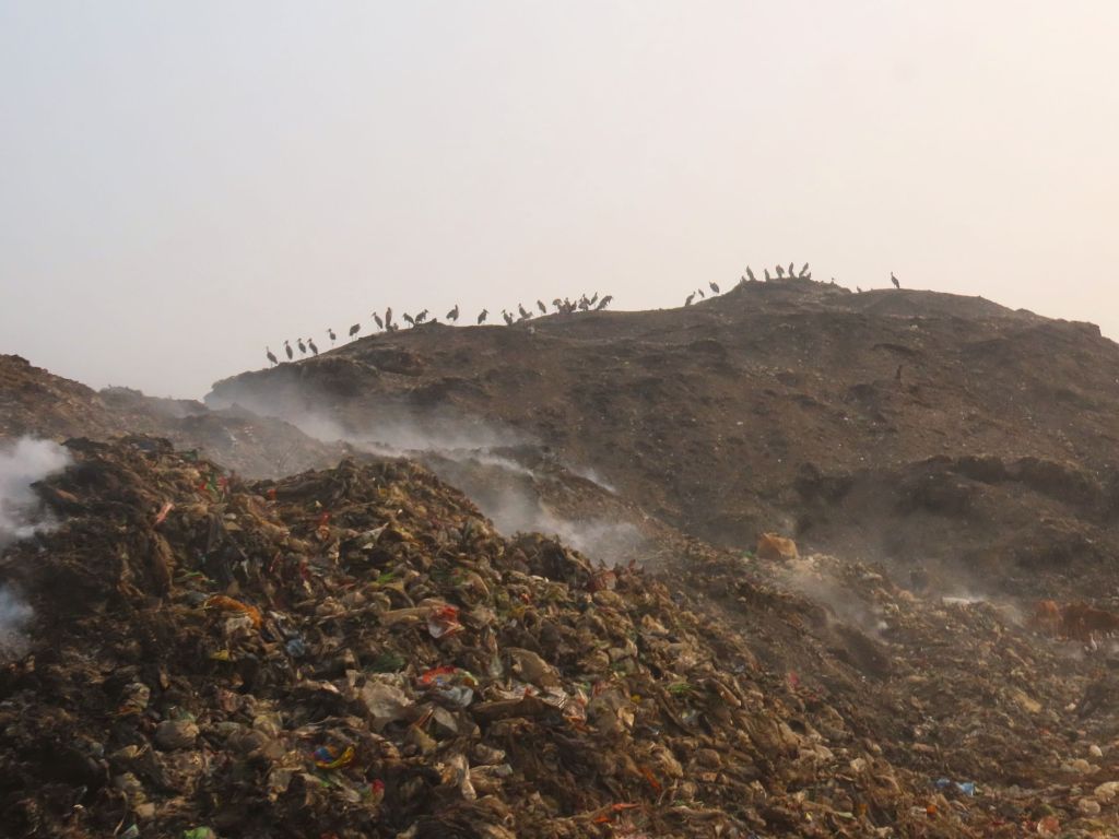 The entire hill of trash was alive with birds… towering birds interspersed with cattle and the occasional dog. These huge stork sized birds were no other than the Greater Adjutants, or Hargilas.