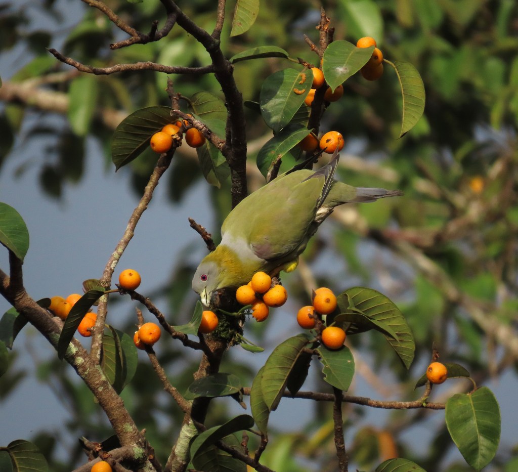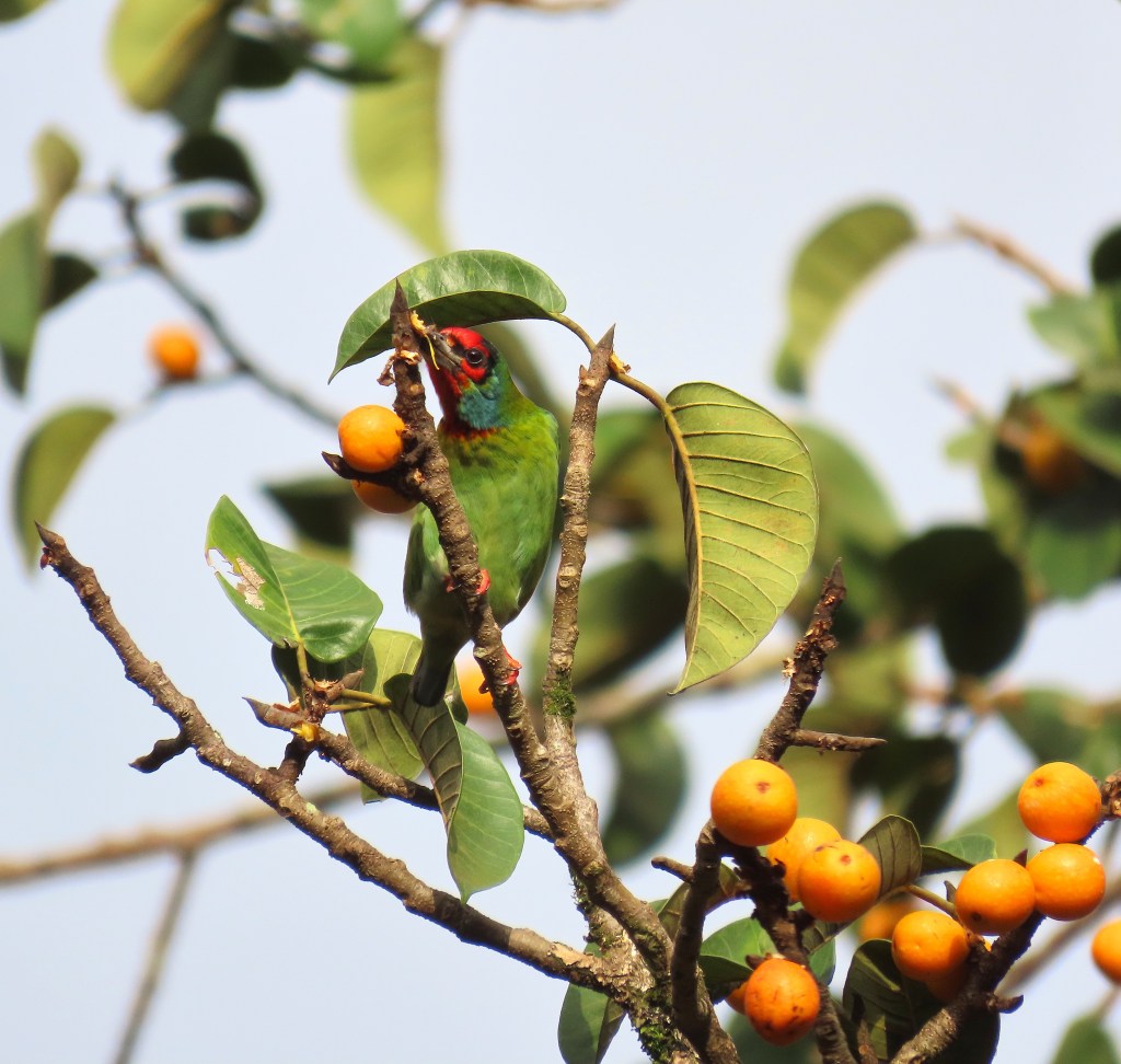 Coppersmith and Malabar Barbets darted through the canopy, munching on figs. Tiny Indian Yellow Tits and Asian Tits flitted about busily, joined by Common Ioras and the regal Green Imperial Pigeon.